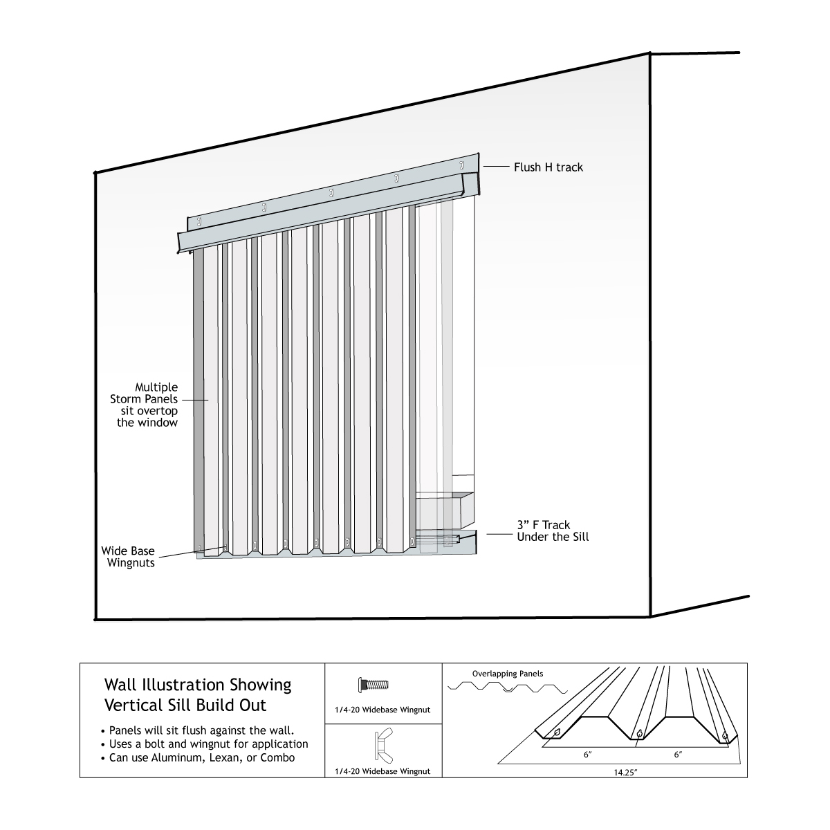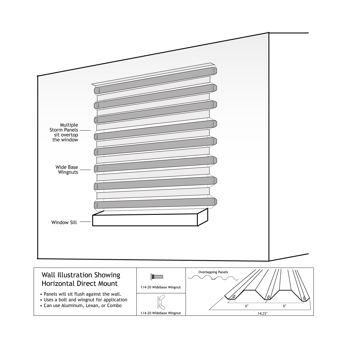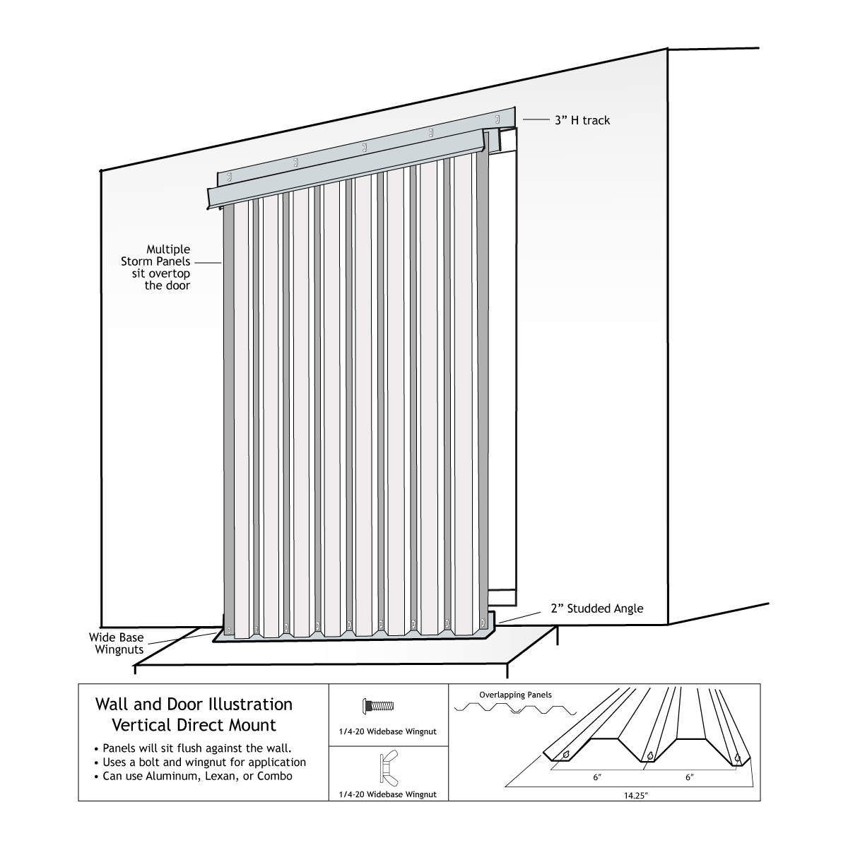 In this process, you attach a track above and below your window or door. Then, slip the panels into the top track and secure them at the bottom with screws and wing nuts. When removed for storage, the tracks can stay on the wall, while panels, screws, and wing nuts are stored together for easy reinstallation. This is the quickest and easiest way to install shutters when a storm approaches.